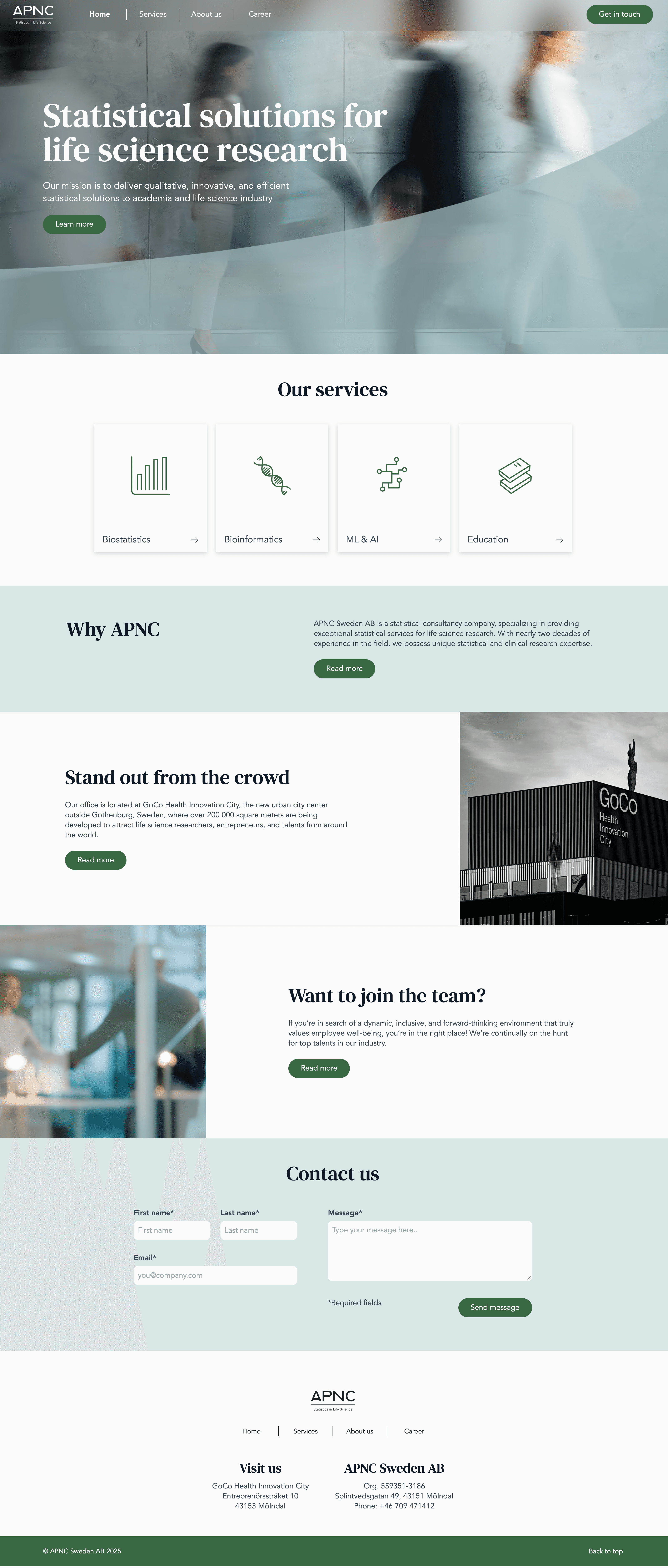 APNC Sweden AB är ett statistikkonsultföretag som specialiserar sig på att erbjuda förstklassiga statistiska tjänster för forskning inom life science. Med nästan två decenniers erfarenhet inom området har man en unik kompetens inom statistik och klinisk forskning.