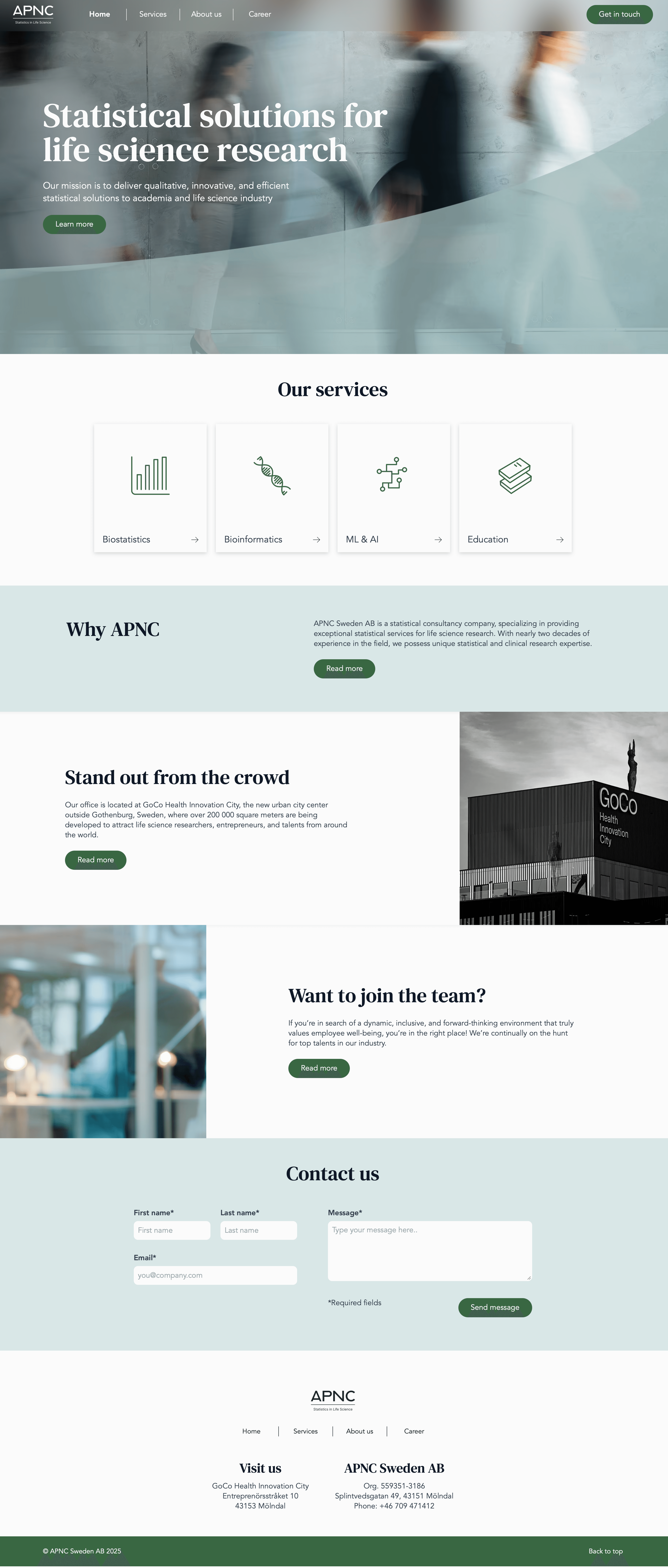 APNC Sweden AB is a statistical consultancy specializing in high-quality statistical services for research in life science. With nearly two decades of experience in the field, the company brings unique expertise in statistics and clinical research.
