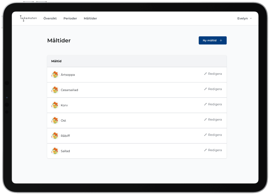 Itiden has developed and created a design for both an administration interface for meal planners/administrators and the student interface itself. For students, there has been a great focus on usability and ensuring that it works simply and clearly.