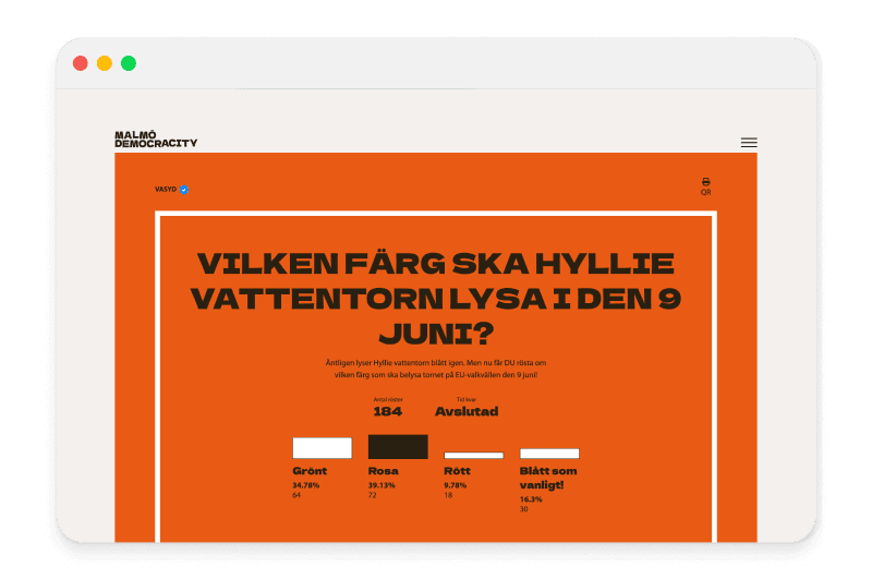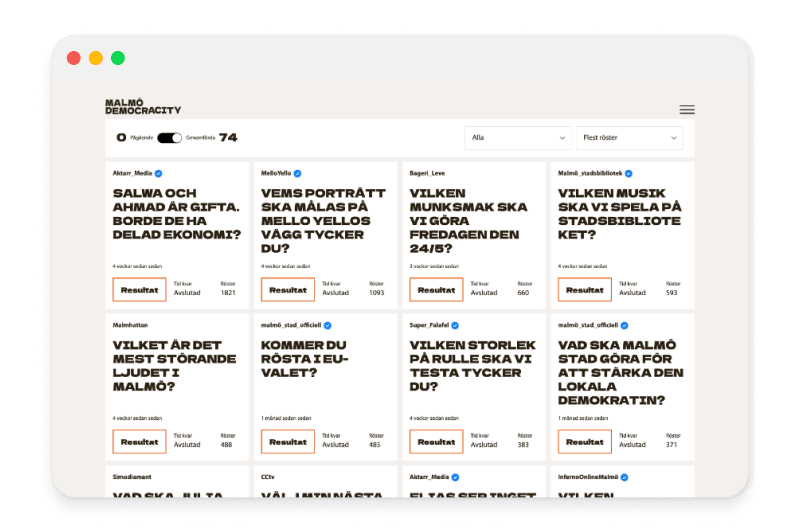 The result was a site where visitors and partners of the City of Malmo could create their own polls and let the public make their voices heard in them.